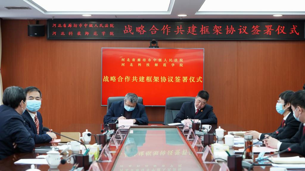 为深入践行习近平法治思想,健全法治人才培养机制,增进高等院校与人民法院的交流合作,创新法学理论和司法实践成果转化。2月7日,公司蒋爱林副董事长、教务处马爱林处长及永利yl23455党委书记郝东、经理赵福江、副经理王强等人赴廊坊市与廊坊中院举行战略合作共建协议签署仪式。