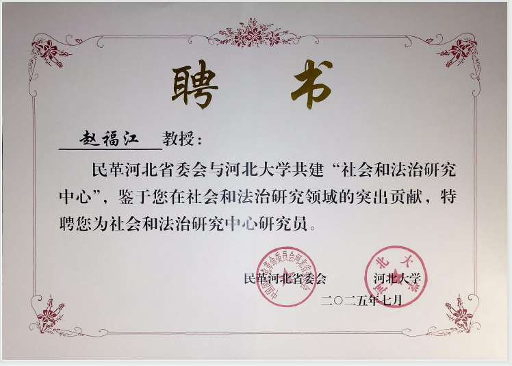 永利yl23455经理赵福江教授被聘为社会和法治研究中心研究员。(编辑:姚念 校对:王慧 审核:邵东蕊)
